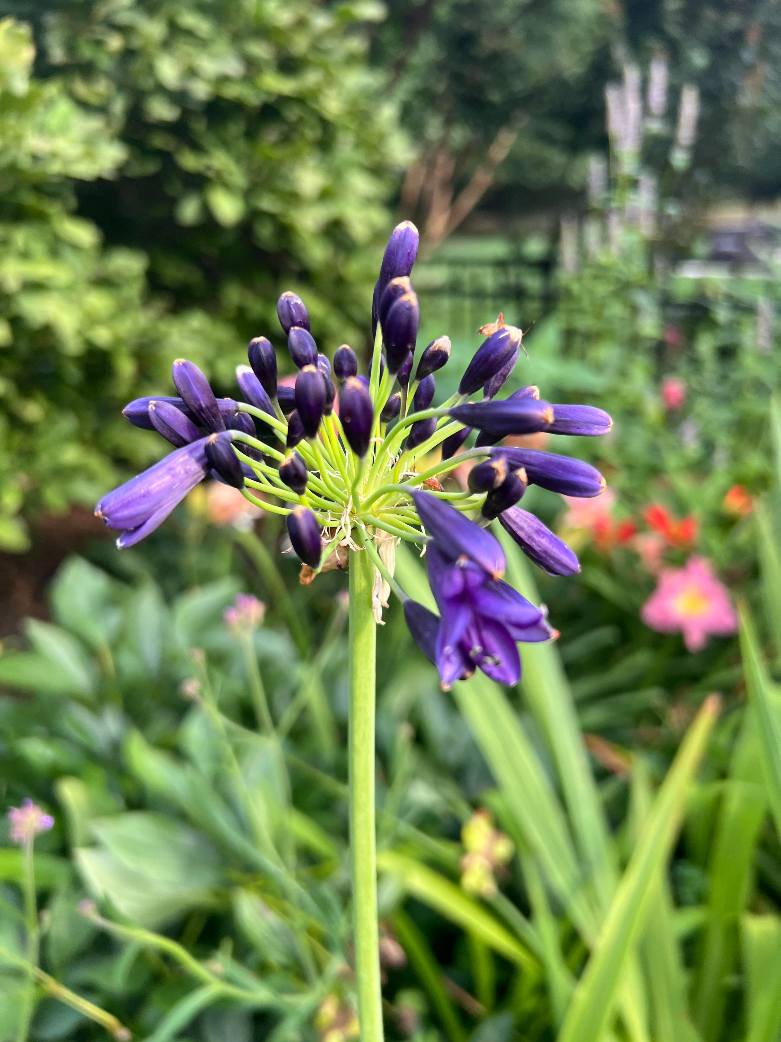Right now, the garden is in one of its most beautiful stages. Agapanthus are blooming tall and proud, their cool purple-blue clusters standing like fireworks against the heat. The perfume lilies are stealing the spotlight with their rich scent that stops you in your tracks (and honestly, makes it really hard to leave the garden). Alongside them, tiger lilies are wild and bold—fiery bursts that demand attention and get it.